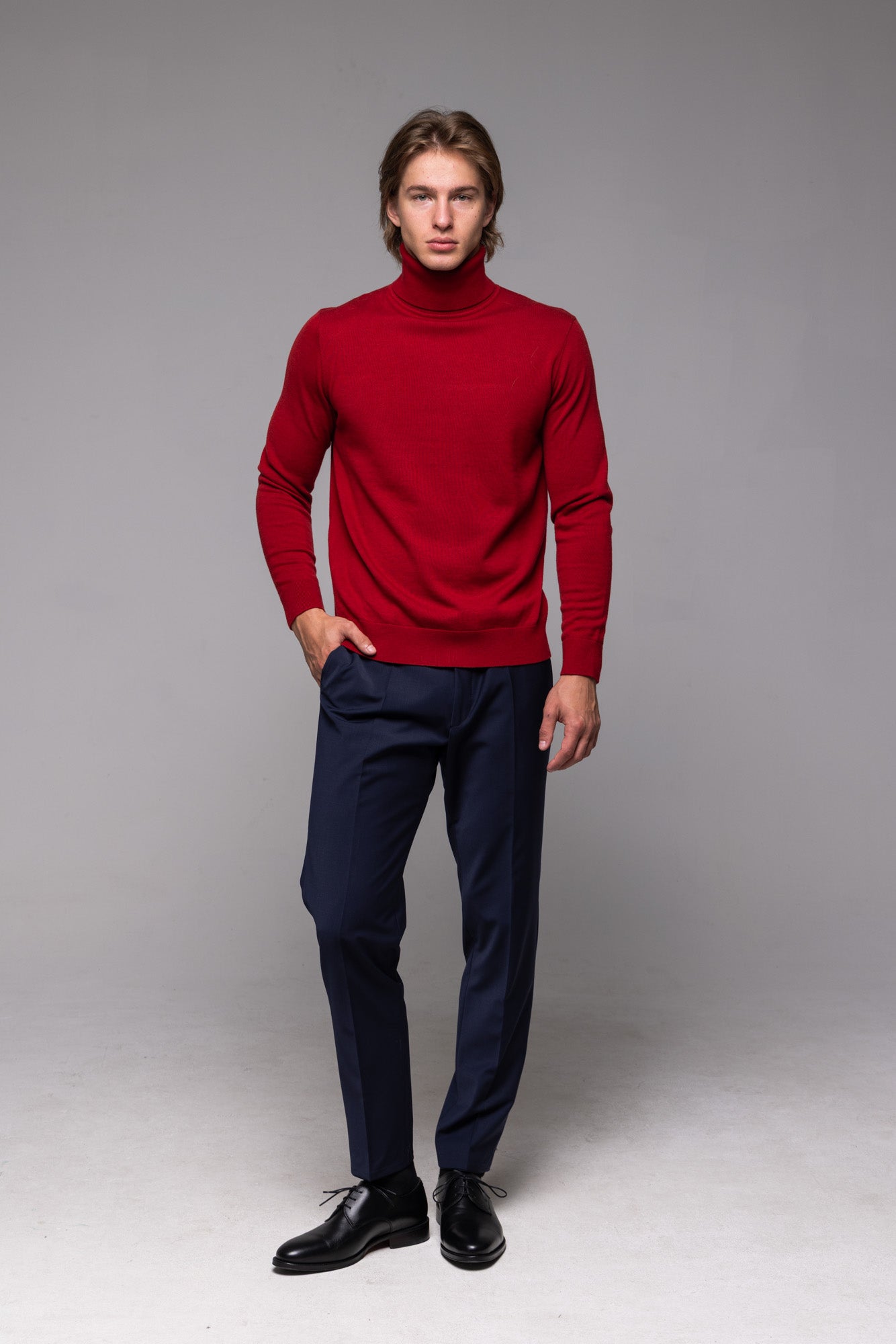 - Elegantný Slim Fit rolák z hladkého úpletu.