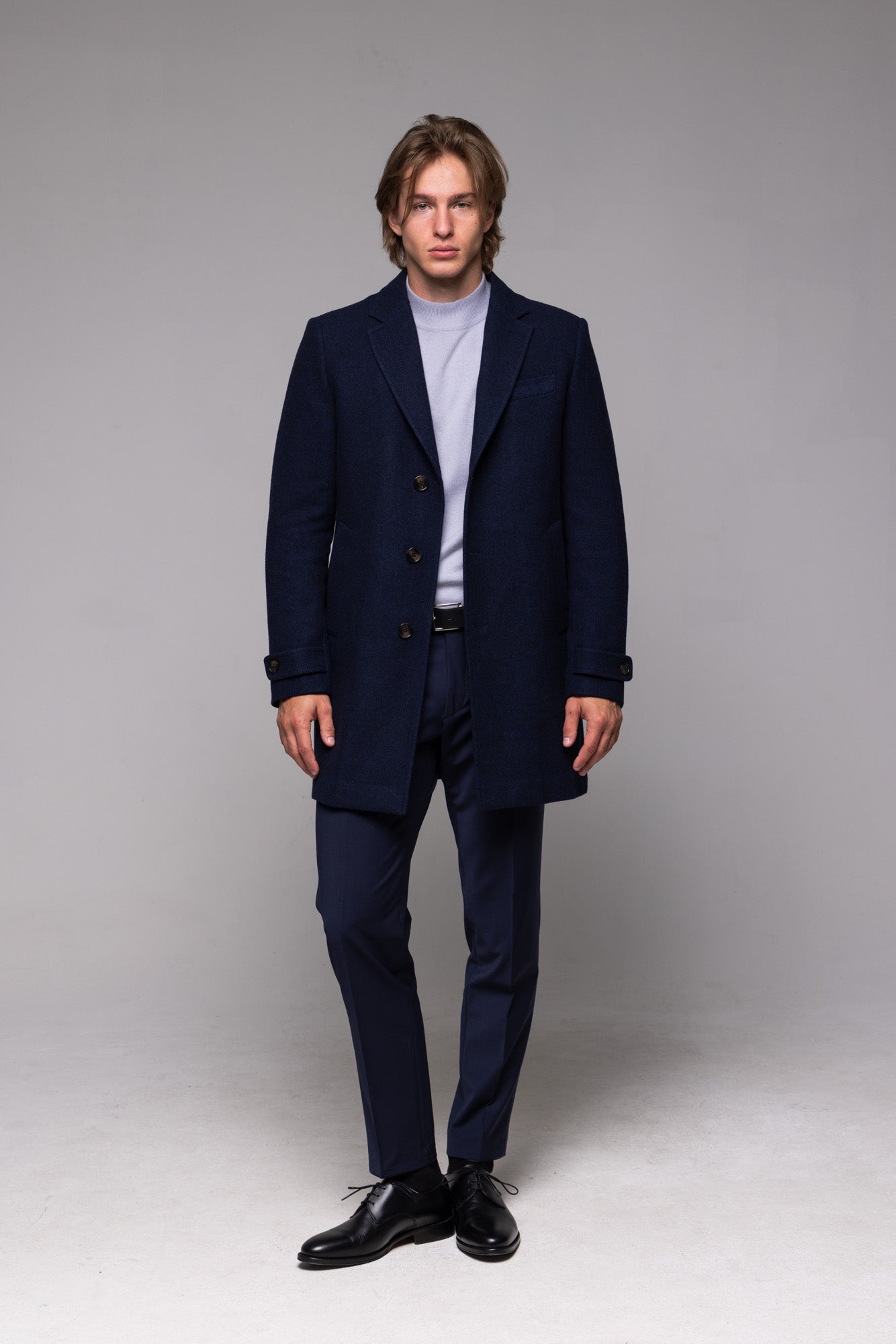 - Elegantný pánsky Slim Fit kabát, ktorý spája klasický štýl s praktickými prvkami.