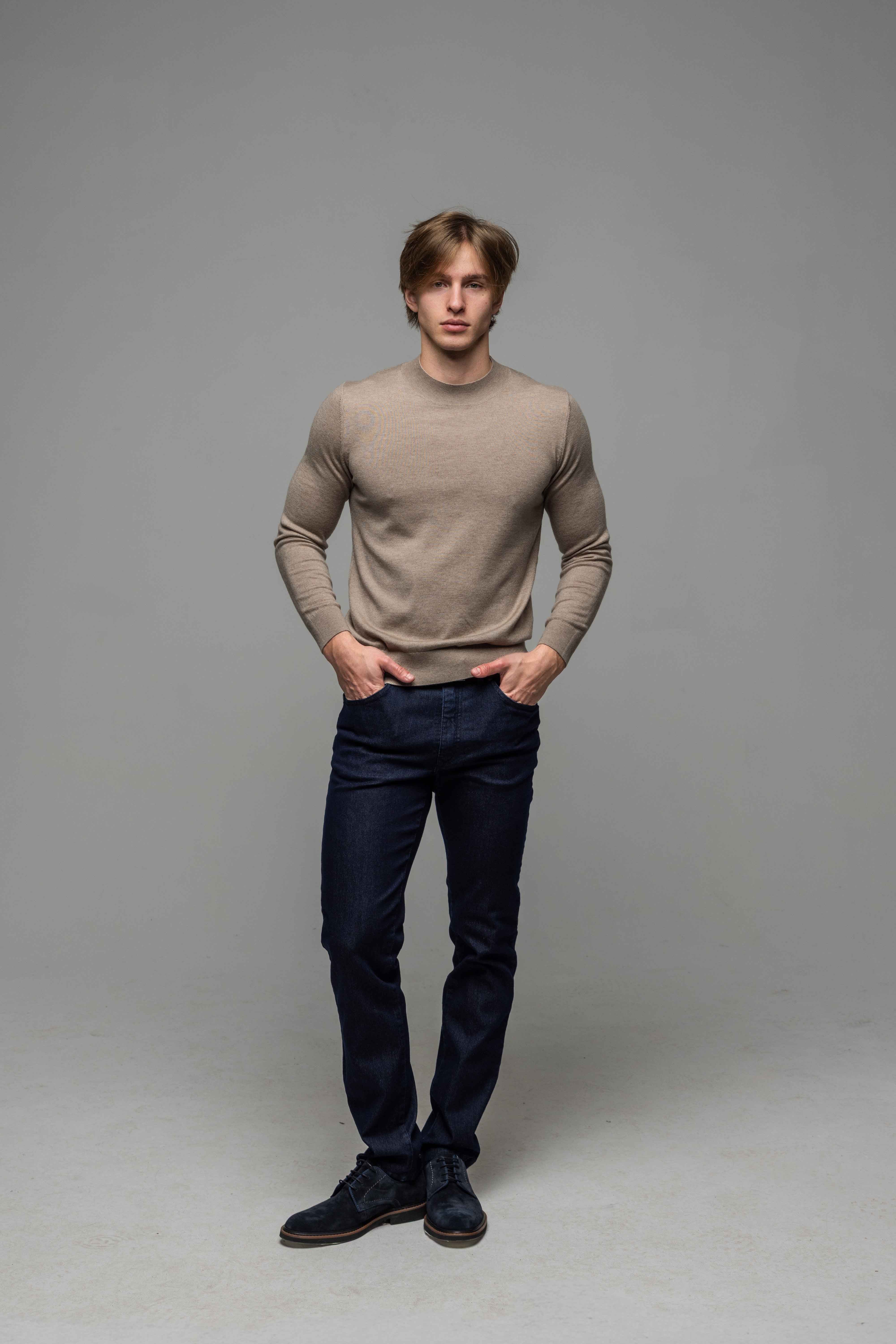 - Model je vysoký 187 cm a má oblečenú veľkosť 33/32.