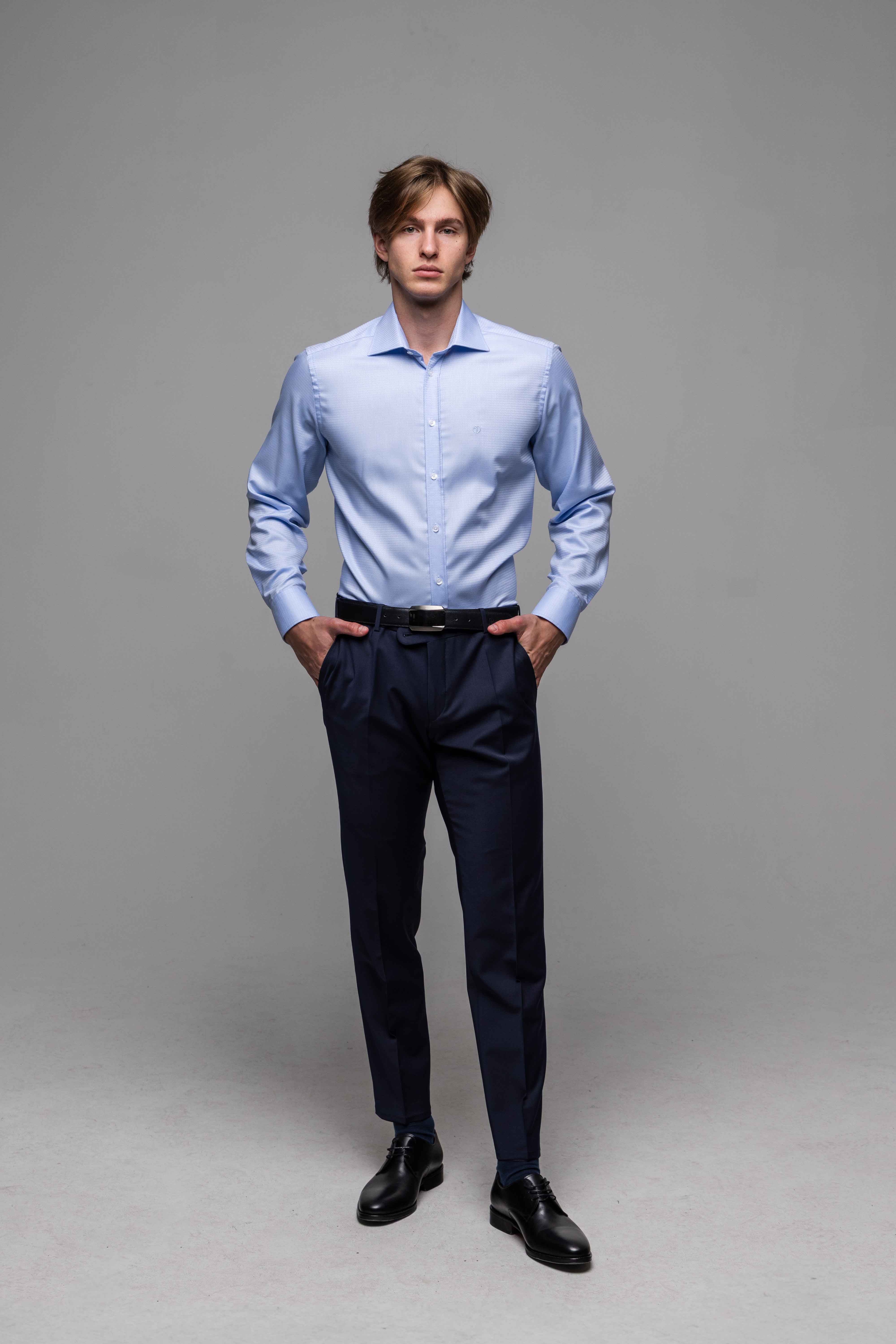 Modrá spoločenská Classic Fit košeľa s pleteným vzorom