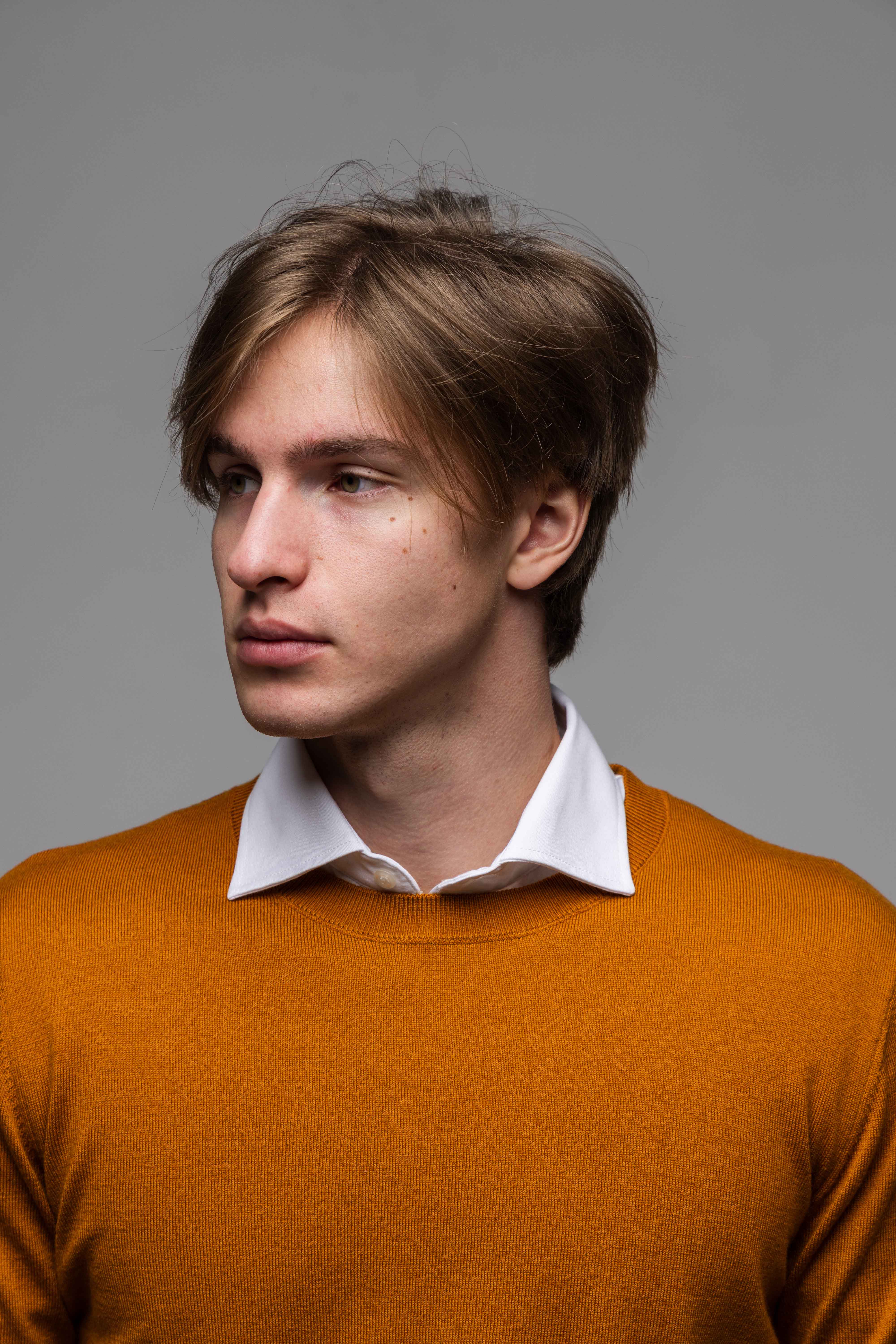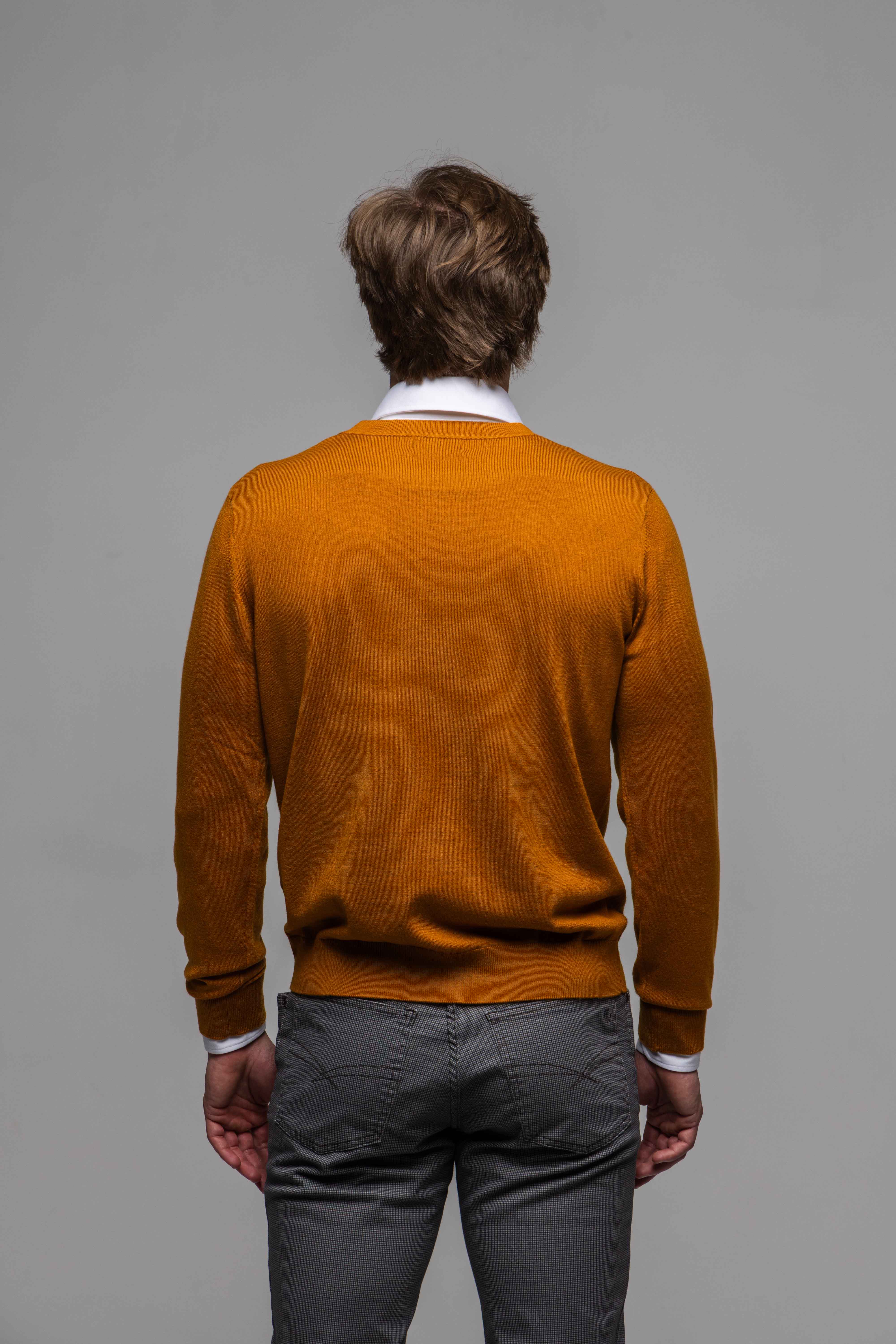 Karamelový bavlnený pulóver s okrúhlym výstrihom