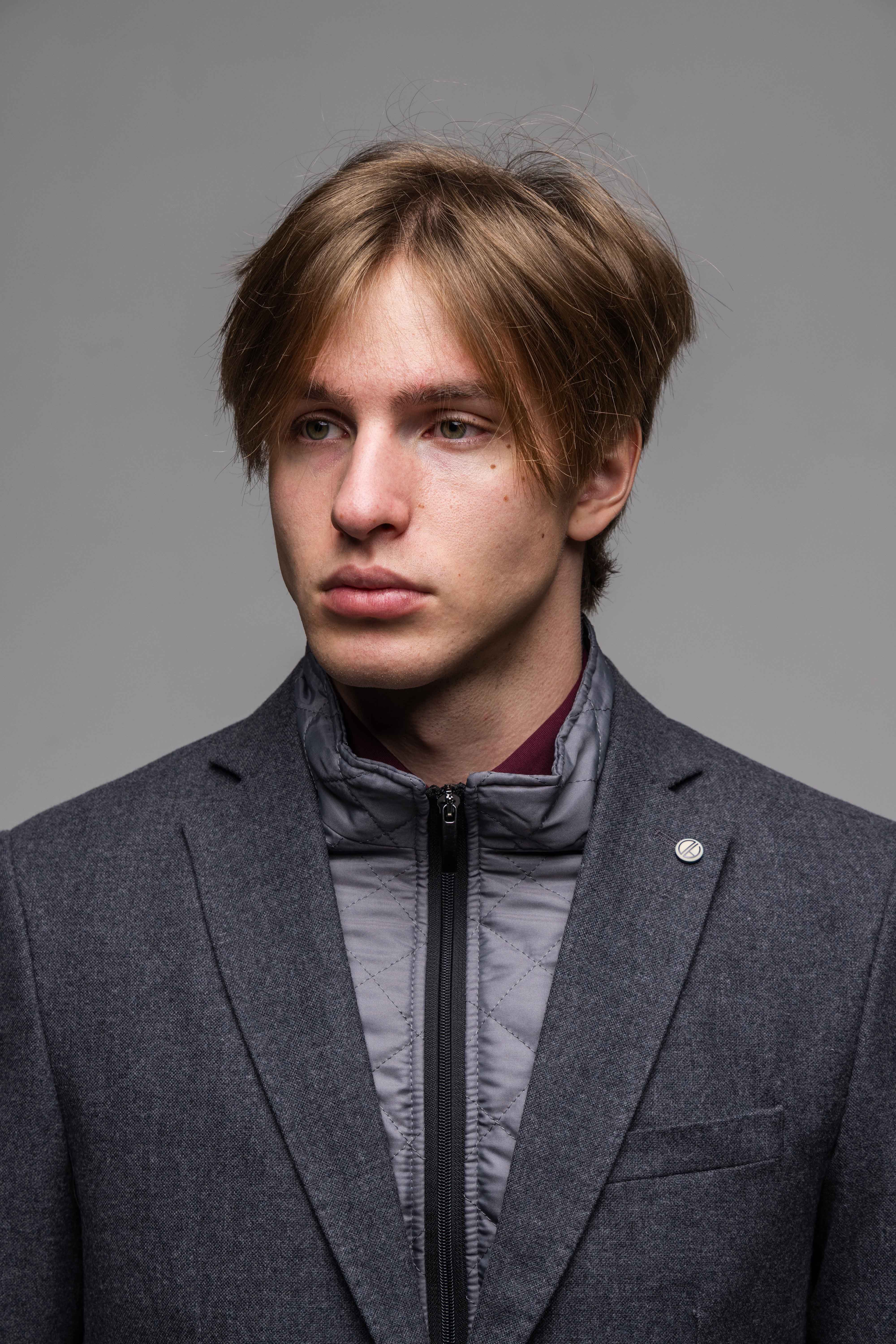 - Model je vysoký 187 cm a oblečenú má veľkosť 50.