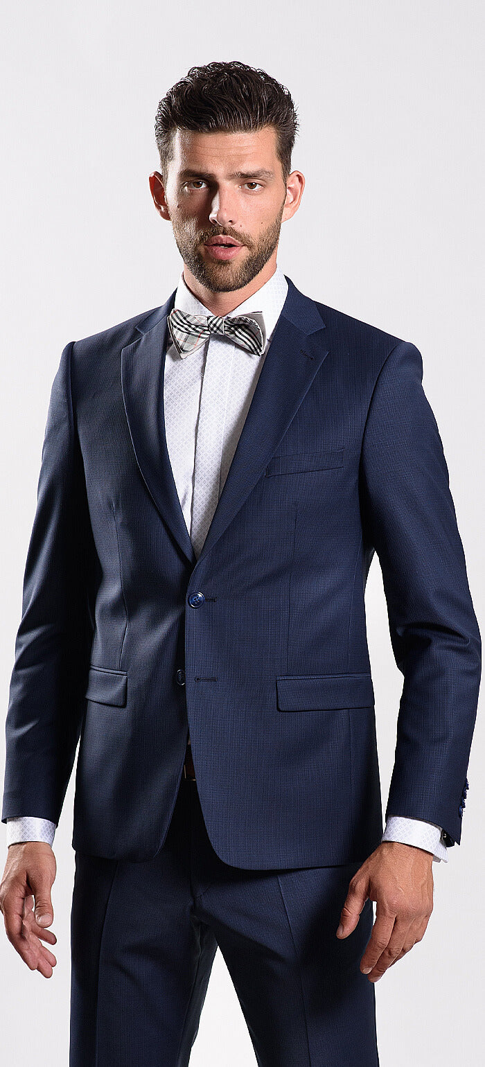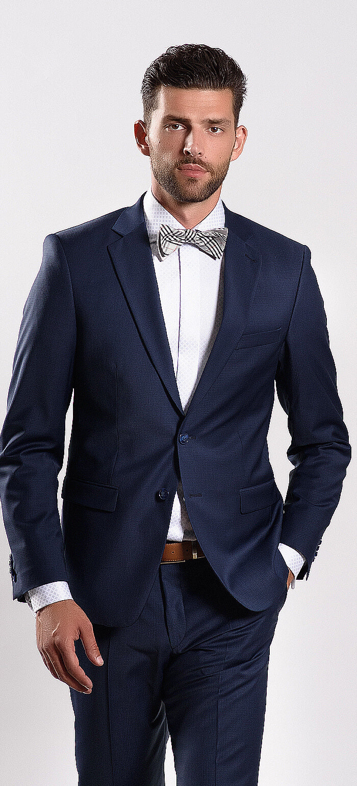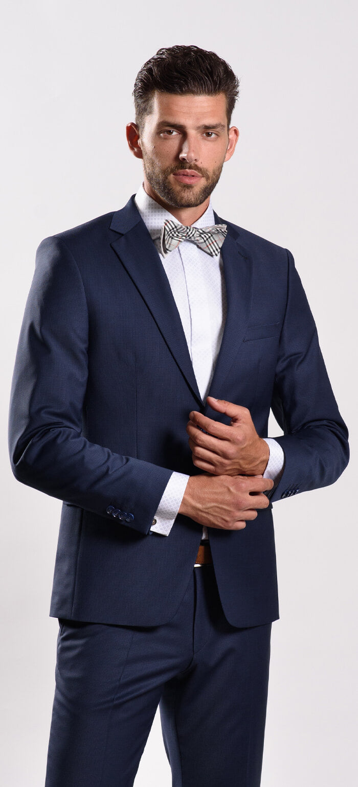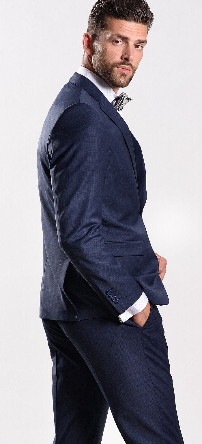 Tmavomodrý Slim Fit oblek s jemným vzorom